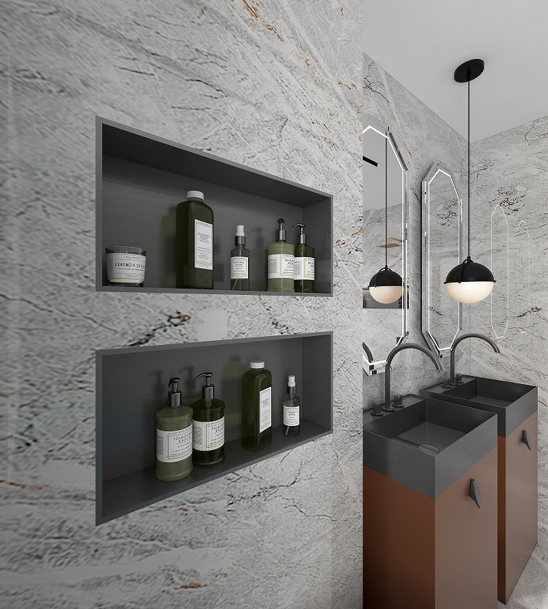 Unlike traditional niches that require extra labour and expensive tile work, this niche is fully finished and ready to mount into your wall opening.